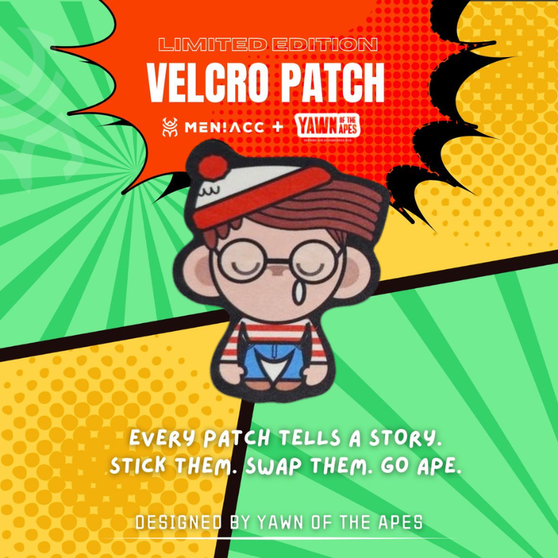 This patch features the character in a red striped explorer look, giving a fun nod to the classic “spot-the-guy” style while keeping it uniquely Yawn of the Apes.